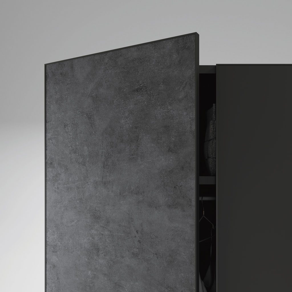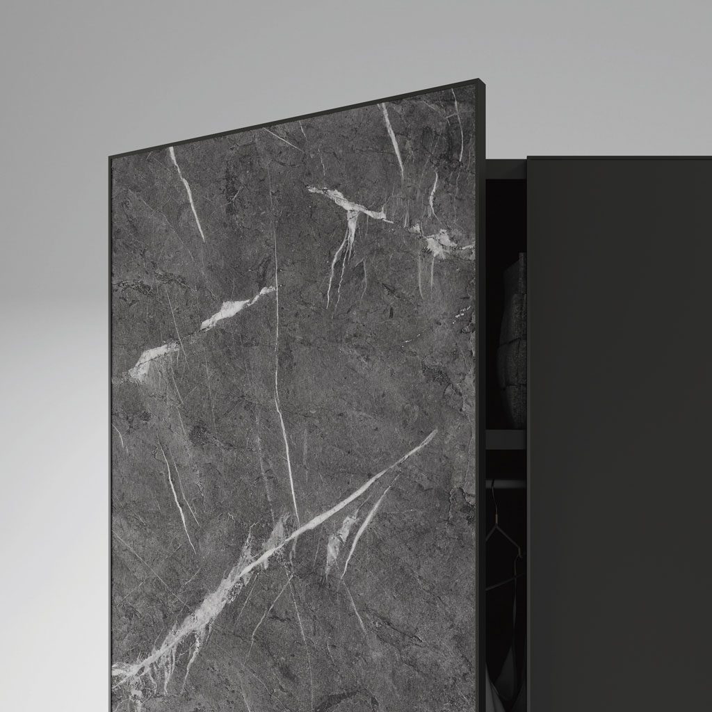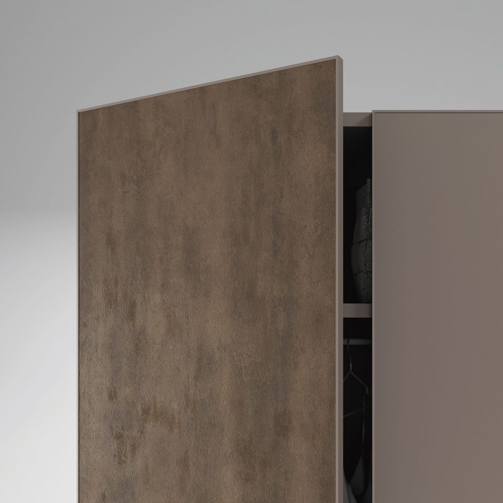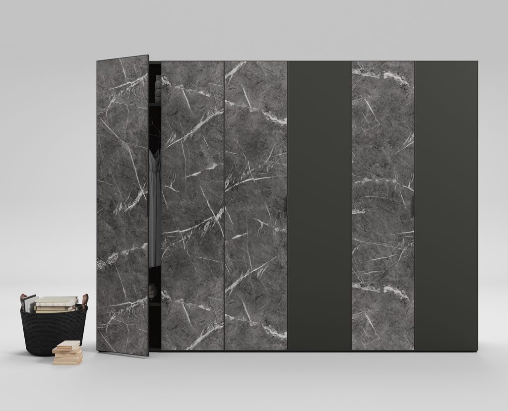 Encontramos el color Vulcano en dos de las puertas, y el acabado Stone Royal en las otras cuatro. El aluminio de los marcos, está también en color Vulcano. Como puedes ver en las imágenes debes saber que hay otros cuatro acabados Stone, que imitan la rugosidad de la piedra y el mármol, además del que te hemos presentado en este armario. Además, queremos contarte que el catálogo Nolimits Next tiene otros muchos colores y acabados para que encuentres los que mejor se adapten a ti y al armario que necesitas en tu dormitorio. Este armario de seis puertas mide 300 cm de ancho, 239 cm de alto y 60 cm de fondo. Medidas de este armario de seis puertas tan exclusivo