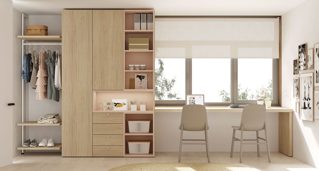 Armario vestidor y escritorio para dos, placer por compartir espacios