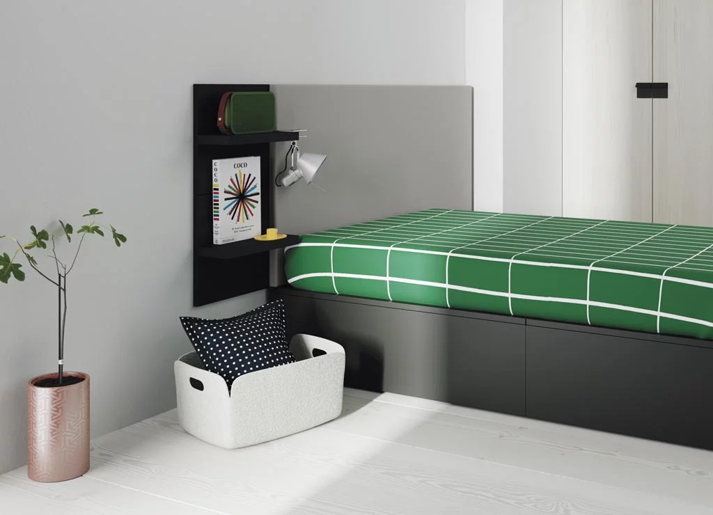 Tenemos una amplia colección de mesitas y cabezales para las camas, en este diseño de dormitorio hemos hecho algunas opciones para que puedas escoger la que se adapta mejor a ti.
