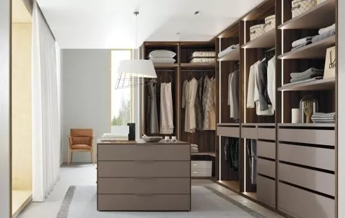 Vestidor en forma de L con puertas de cristal transparente o sin ellas